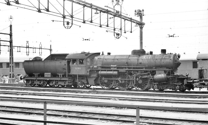 Die Lok E 964 (alias F1200) wird im Juni 1963 an die SJ zurückgegeben. Hier im Bahnhof Helsingborg ist sie schon wieder auf schwedischem Boden angekommen. Copyright: Frank Stenvall