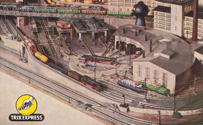 Ab 1953 stellte man die TRIX Express Eisenbahn auf die Versorgung mit Gleichstrom um, behielt aber (vorerst) das 3-Schienen-Gleis bei.